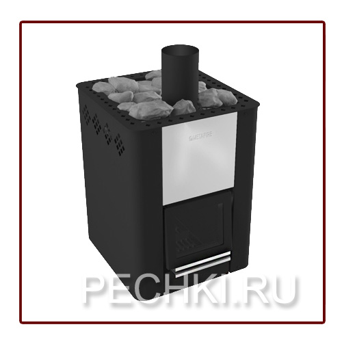 Толщина металла топочной камеры 5—8 мм. Кожух-конвектор создает мощный горячий конвекционный поток, равномерно прогревающий парилку, и экранирует жесткое инфракрасное излучение, исходящее от раскаленных стенок топки. Вентилируемая вместительная каменка прогревается пламенем с нескольких сторон и эффективно нагревает камни.Дожиг вторичных газов обеспечивает высокую эффективность и большую полноту сгорания топлива.